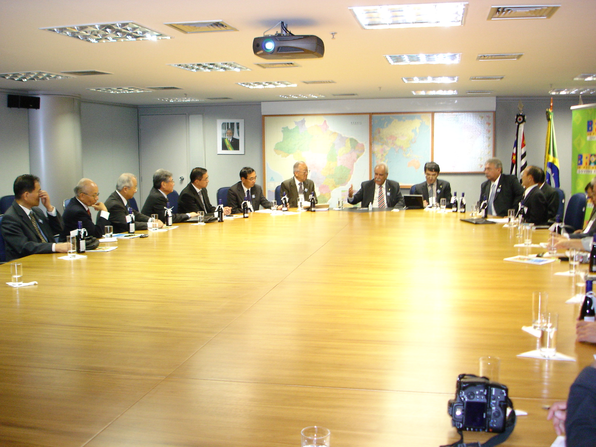 左から前田一郎相互啓発委員長/国家統合省のセバスチアン・エドアルド・ダ・クーニャ事務次官補佐官/田中信会頭/ジョアン・レイス・サンタナ・フィリョ事務次官/平田藤義事務局長
