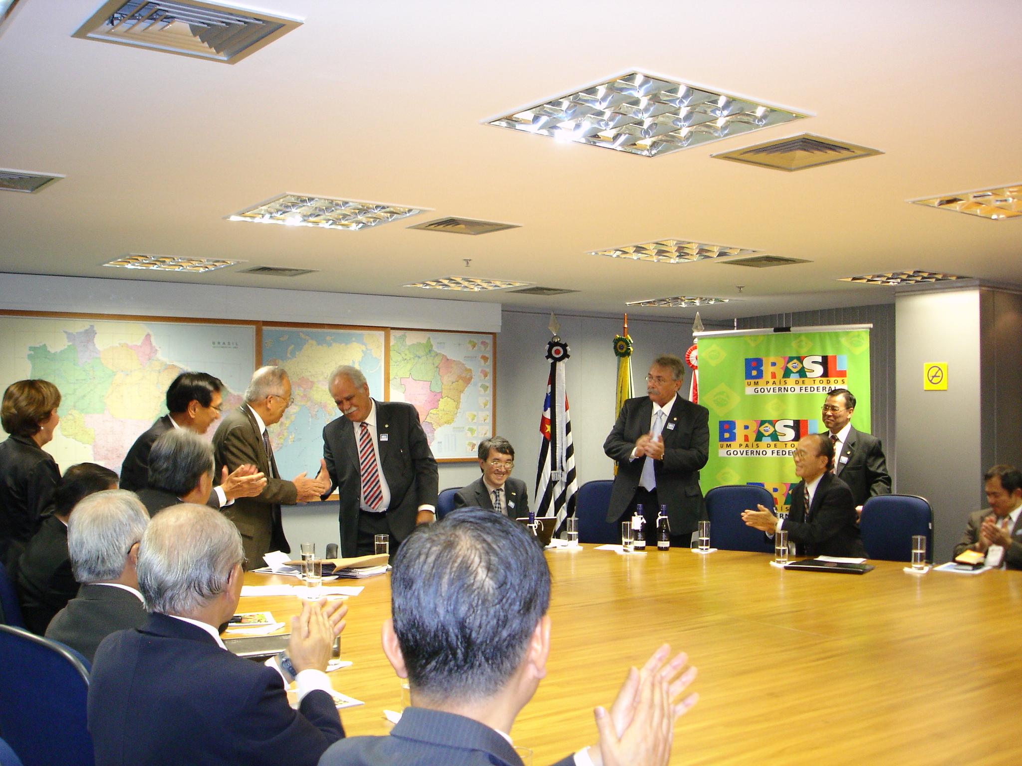 左から前田一郎相互啓発委員長/田中信会頭/国家統合省のジョアン・レイス・サンタナ・フィリョ事務次官
