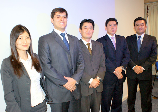 左からGaia, Silva, Gaede & Associados Advocacia e Consultoria Jurídicaのリヴィア・ナオミ・ヤマモト・シニア・コンサルタント弁護士/Pinheiro Neto Advogados のレナト・カオモ弁護士/クラウジオ・ヤノ副委員長/ロベルト・コウチヤマ副委員長/Deloitte Touche Tohmatsu 移転価格部シニア課長のエジネイ・コチ弁護士