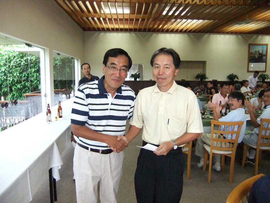 結果は、大滝さん(ホス建設)が、前半42 後半44グロス86 ハンディ22 ネットスコア64の素晴らしいスコアで優勝。2位には増田さん(三井物産)、3位は米倉さん(南米安田)が入りました。ベストグロス賞は、長谷部さん(トヨタ)が前半37 後半39のトータル76で獲得されました。