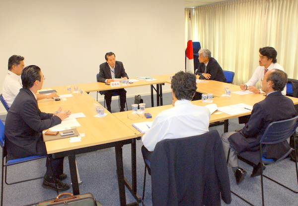 参加者は杉山俊美委員長(新日鉄)、内田肇副委員長(三井住友銀行)、岡村昌一副委員長(メタルワン)、出見宏之副委員長(新日鉄)、加藤秀雄領事(サンパウロ総領事館)、平田藤義事務局長