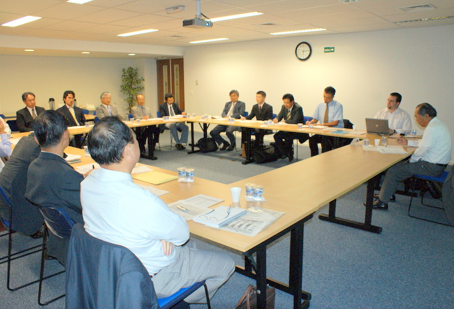 参加者は長谷部部会長(トヨタ)、高岡氏(ブリジストン)、藤田氏(NGK),小林氏(デンソー)、下前原氏(三菱コーポレーション)、寺田氏(ホンダ・サウスアメリカ)、伊藤氏(カンジコ)、駒形氏(MCC)、二木氏(ミドリ・アトランティカ)、佐藤氏(三菱コーポレーション)、大竹氏(タカタ・ペトリ)、大川氏(矢崎総業)、松本氏(トヨタ)、ロペス氏(トヨタ)、加藤領事(サンパウロ総領事館)、佐々木副領事(サンパウロ総領事館)、平田事務局長
