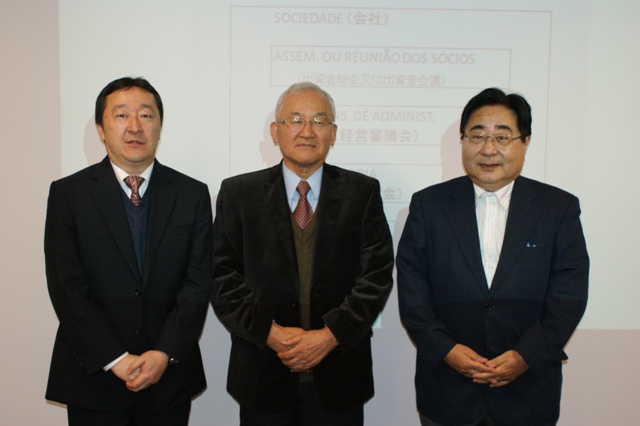 左からコンサルタント部会の澤田吉啓副部会長(ジェトロ)/講師で副部会長の押切フラヴィオ弁護士/都築慎一部会長