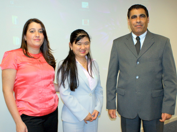 左からトレンチ・ロッシ・ワタナベ弁護士事務所のルシアーナ・シモエンス・デ・ソウザ税制訴訟担当弁護士/トッツィーニ・フレイレ弁護士事務所のアナ・クラウジア・ウツミ氏/ジョゼ・オリベイラ副委員長(Fotos: Rubens Ito/CCIJB)