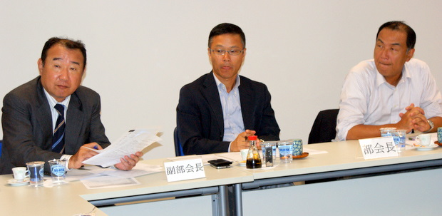 左から和田亮副部会長(日通)/岐部ルイス部会長(UBIK)/川手純一副部会長(NYK) (Foto: Rubens Ito / CCIJB)