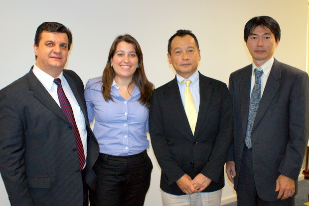 左から講師のウイリアム・ロドリゲス弁護士/ルシアナ・シモエス・デ・ソウザ弁護士/上野秀雄委員長/平瀬ワシントン副委員長 (Foto: Rubens Ito)