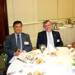 昼食会は平田事務局長が司会を務め、初めに特別参加者のアルキミン元聖州知事、ジョアン・カルロス・メイレーレス元聖州経済・科学技術・観光開発局長、マコト・イグチ元連邦議員/元フェーラス市長、ブラジル・アフリカ商工会議所のアダルベルト・カマルゴ会頭/ブラジル・ナイジェリア商工会議所会頭、カルロス・ケンジ・フクハラ州儀典長補佐/ブラジル日本イミン百周年記念協会儀典担当、西林万寿夫総領事、旭日双光章受賞した後藤隆顧問を紹介した。