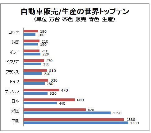 10年前のブラジルの国内販売は世界ランク10位であったが、2015年には600万台に達すると予想、人口大国のインドの自動車販売は220万台で世界ランク8位、生産は270万台で7位が予想されている。