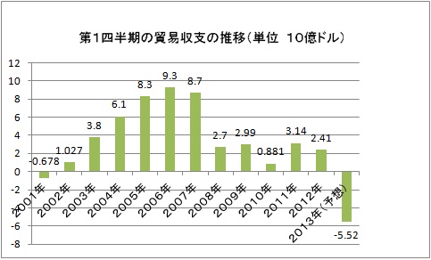 昨年12月からレアル高の為替、欧米の景気減速並びにアルゼンチンの保護貿易などの要因で、3月の第3週までの今年の貿易赤字は55億2,600万ドルに達して、今年の第1四半期は、2001年同期以来の貿易赤字を記録すると予想されている。