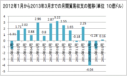 第1四半期の貿易収支は、51億5,000万ドルの赤字を記録して2001年の第1四半期以来で最高の貿易赤字を記録、財務省関係者は、今年の貿易収支黒字は100億ドルに達しないと予想している。