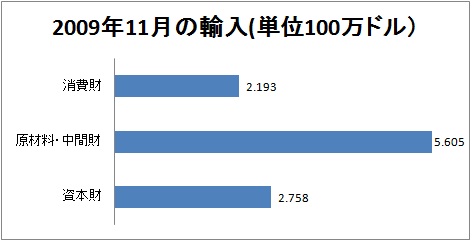 11月の鉱工業部門向け機械・装置などの資本財輸入は前月比1.0%減少、今年11ヶ月間では18%減少、原材料並びに中間財は29.5%減少している。(2009年12月2日付けヴァロール紙)