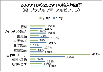 ルーラ政権誕生の2003年から昨年までのブラジルの世界からの輸入は80%増加、しかし主要貿易相手国のアルゼンチンからの輸入比率は2003年の9.7%から昨年は8.8%に減少、昨年の二国間貿易は7.8%まで減少している。