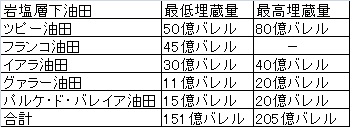 ペトロブラスは岩塩層下の原油埋蔵量を151億バレルから205億バレルを予想、ツピー油田の試験掘削コストは2億4,000万ドルであったが、今回のフランコ油田は技術向上で1億ドルまでコスト削減しており、年末までに16か所で試験掘削を予定している。(2010年5月13日付けヴァロール紙)