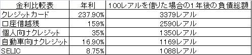 クレジットカードの使用はクレジット全体の25%に達しているが、金融危機で金利の安いクレジットが信用収縮で利用できなくなったために、年利237.9%のクレジットカードの使用を余儀なくされている。