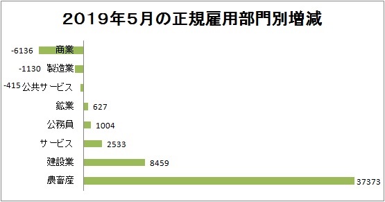調査対象の8部門の内3部門でマイナスを記録、特に商業部門はマイナス1万1,300人、製造業部門はマイナス6,136人、公共サービス部門はマイナス415人を記録している。