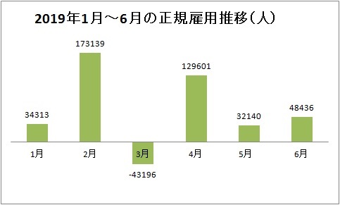 また今年上半期の正規雇用は、ジャイール・ボルソナロ新政権への期待感が大きかったにもかかわらず、年金改革法案遅れなどによる景況感停滞で40万8,500人と前年同期の39万2,500人並みに留まり、また6月の過去12カ月間の正規雇用は52万4,900人となっている。