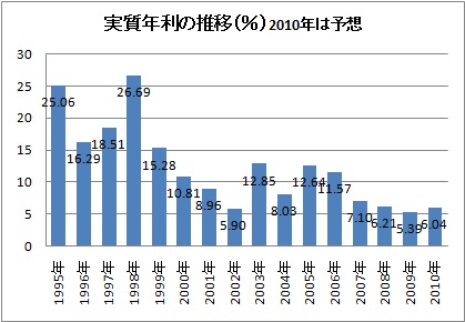 第一次カルドーゾ政権の1995年から1998年の平均年利は22%、第二次カルドーゾ政権は10%、ルーラ政権誕生時のSelic金利は25.5%から26.5%に上昇、2008年には16%から19.75%、今年は2.5%上昇して11.25%になると見込まれている。(2010年3月4日付けヴァロール紙)