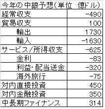 中銀は製造部門やサービス部門への対内直接投資を450億ドルと予想、経常収支赤字をカバーするには40億ドルが不足しているが、海外投資家の金融投資によるドル流入でカバーすると見込んでいる。