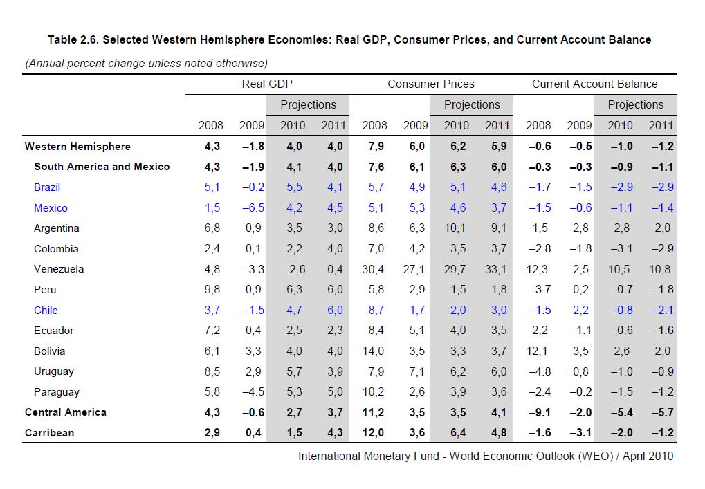 BRICs諸国では昨年のGDPはロシアがマイナス7.9%、今年は4.0%、 2011年は3.3%、中国は8.7%、10%、9.9%、インドは5.7%、8.8%、8.4%が予想されている。(2010年4月22日付けエスタード紙)