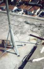 アンテナを固定するためアスファルト防水を貫通してボルトを打ち込んでいます。(結果として下の部屋で雨漏りがする) |