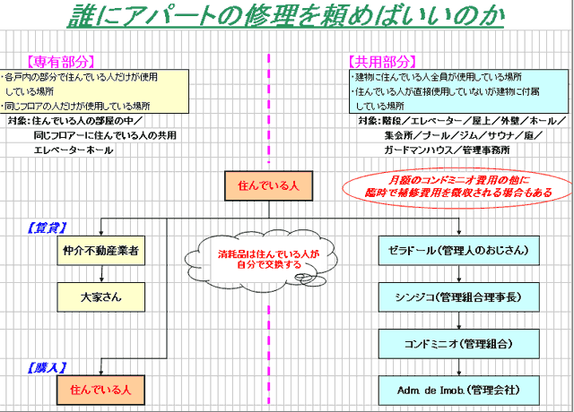 ※一般的にはゼラドールに紹介してもらい、共用部分の改修工事で慣れている業者に頼むのが便利です。ひとつの業者で全て扱っているところもあります。